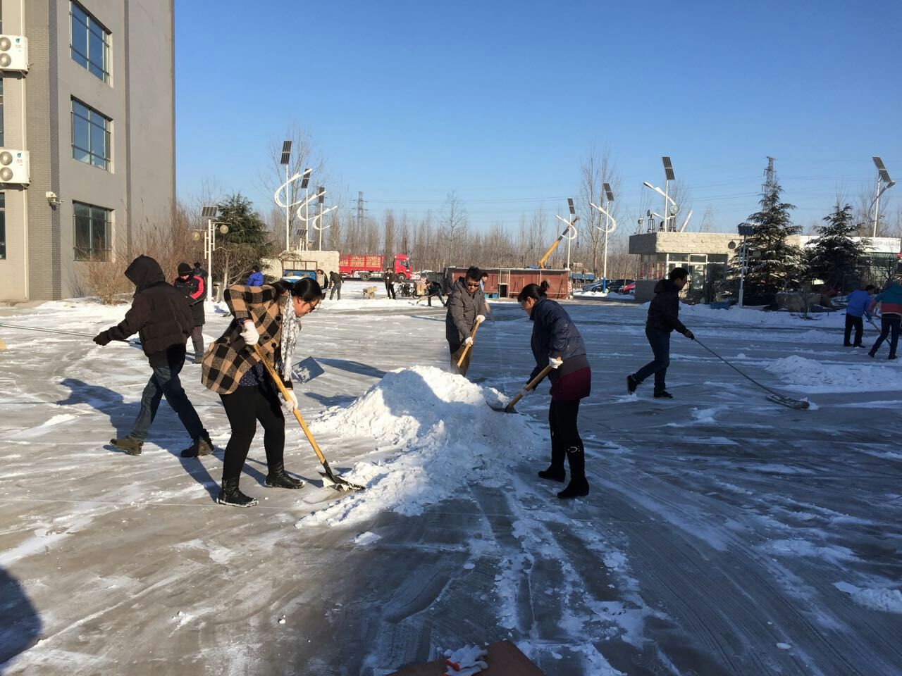 2014年12月7日秦皇島迎來了入冬以來的第一場大雪。8日清晨,厚厚的白雪覆蓋了整個(gè)廠區(qū),銀裝素裹分外美麗。為確保廠區(qū)生產(chǎn)、發(fā)貨正常進(jìn)行,羿珩科技全體員工組成了幾個(gè)小分隊(duì),劃分區(qū)域,齊心協(xié)力清掃積雪。大家干勁十足,在寒風(fēng)中相互配合,中午之前徹底完成了掃雪任務(wù)。