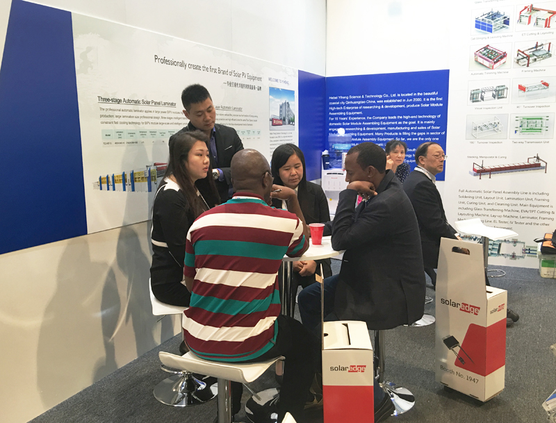 河北羿珩科技股份有限公司精彩亮相2016美國國際太陽能展覽會(Solar Power International),此次展會是行業(yè)內(nèi)最成功最具影響力的國際性展覽會之一。展會位于美國拉斯維加斯,為期3天(9月13日至15日)。河北羿珩科技所展示的太陽能光伏組件流水線、層壓機等優(yōu)勢產(chǎn)品備受好評,吸引了眾多參展者關(guān)注。